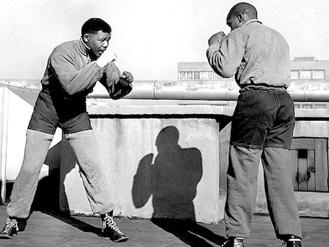 Y aquella foto tomada en los años 50 por el fotógrafo Robert Gosani (Mandela practica boxeo con el peleador profesional Jerry Moloi, en la azotea de un edificio sudafricano) se convertiría en la imagen de Mandela, el pugilista.